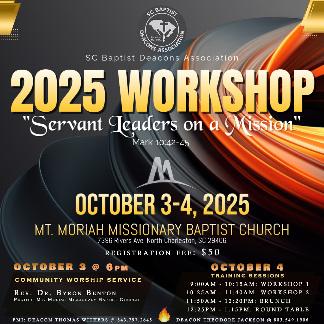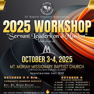 Deacon Theodore Jackson, President SC Baptist of Deacons Ministry jtheodjac@gmail.com, ph. (803) 549-1906